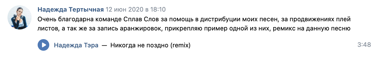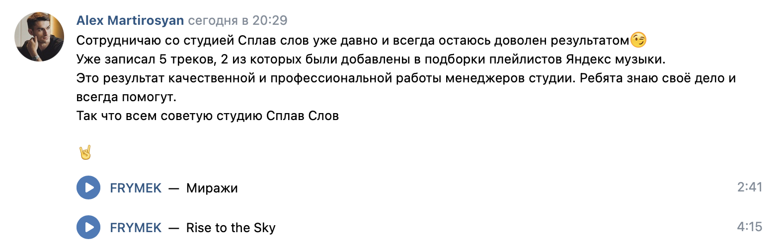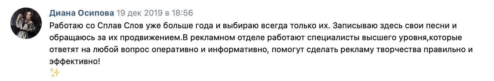 В интернете много услуг по дистрибуции песен и продвижению артистов, начиная от 300 рублей. Но есть ли гарантия, что это не обман, тебя не кинут на деньги, не добавят в ч/с, отберут права на песни? Работая с нами, ты работаешь с музыкальным лейблом, имеющим филиалы в Москве и Санкт-Петербурге, выстраивающим репутацию уже 14 лет, с реальным физическим адресом (г. Москва, Окружной проезд, д.11), а не людьми в интернете, скрывающимися за аватарками.